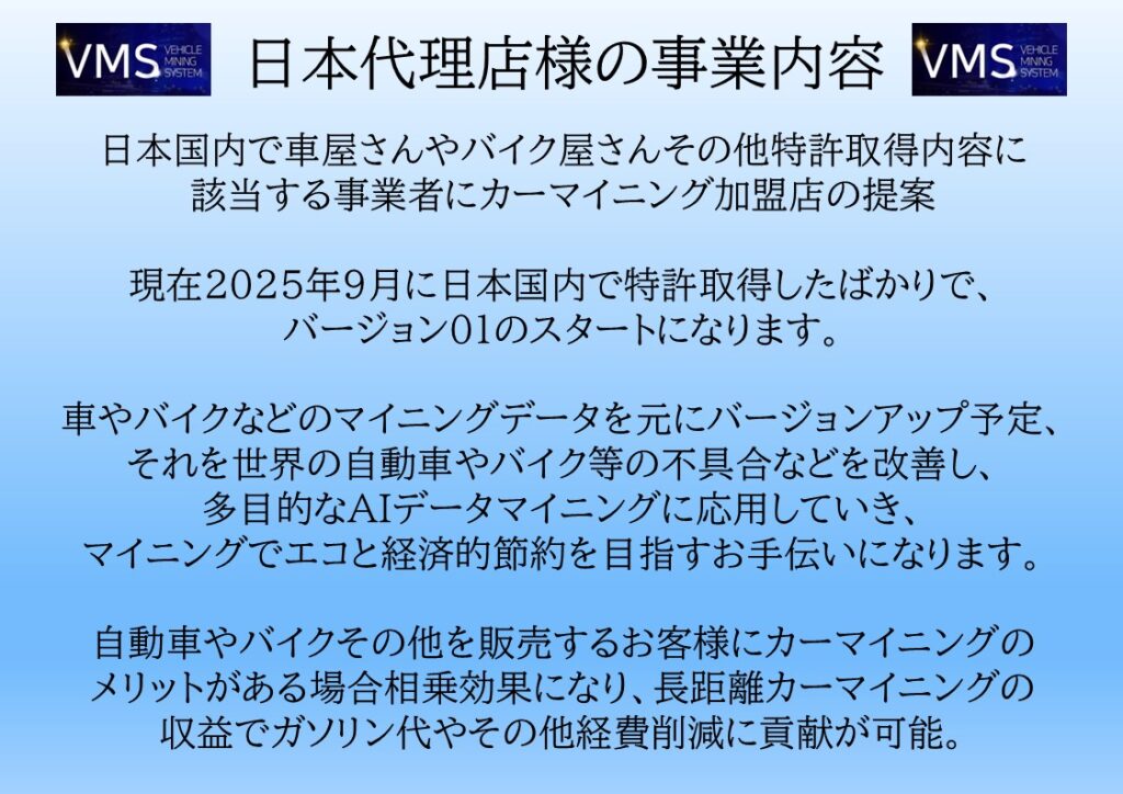 日本特許取得のカーマイニングシステム